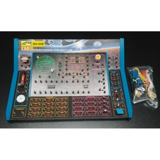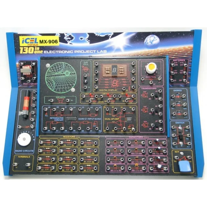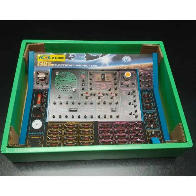 Laboratório de experiências eletrônicas com 130 circuitos diferentes.