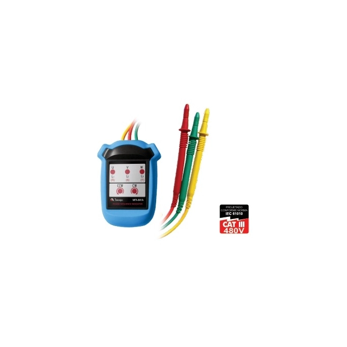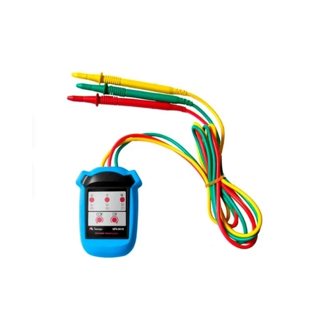 O modelo MFA-841A é um testador de fase portátil que é preciso e fácil de usar. Você pode usá-lo para testar a sequência de fases e verificar se há fase aberta. Ele usa LED e Buzzer como indicadores.