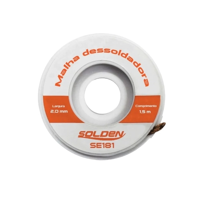 Melhore a eficiência na remoção de solda com a Malha para Desoldar SE181 da Solden, um produto essencial para técnicos e entusiastas da eletrônica que buscam precisão e rapidez no retrabalho de placas de circuito. Esta malha de 2mm x 1,5m é projetada para facilitar a desoldagem sem danificar componentes ou a ponta do ferro de solda, garantindo resultados limpos e profissionais.