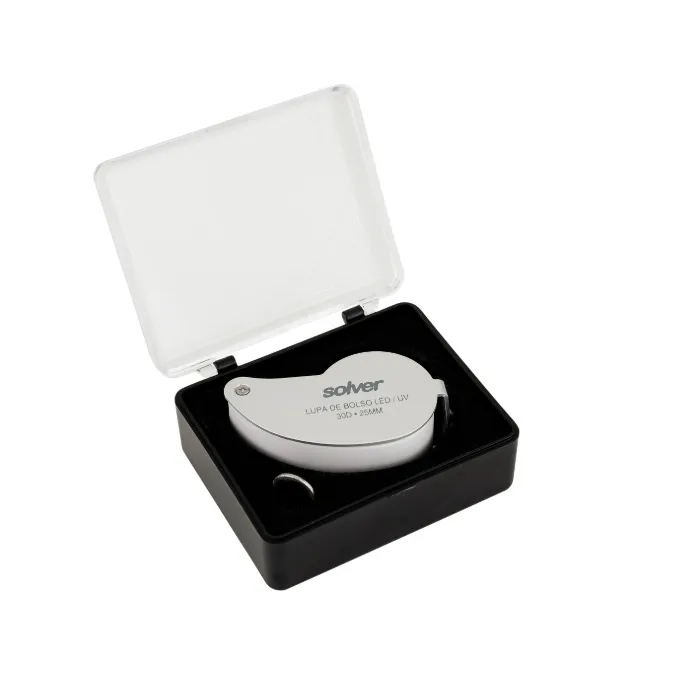 A Lupa de Bolso SLD-131 LED/UV é prática, compacta, leve e extremamente útil para qualquer profissional ou hobbista que deseja observar pequenos componentes ou objetos de forma detalhada. A lente de aumento de 30X e 25mm de diâmetro com iluminação LED branca e LED UV é perfeita para identificar os mínimos detalhes e a iluminação UV auxilia na identificação de marca d´água em notas de dinheiro. Indispensável para todas as demandas que exigem uma visão precisa, é uma ferramenta funcional que além de facilitar o trabalho, garantirá economia e desempenho em múltiplas aplicações. Ideal para reparos na área eletroeletrônica, controle de qualidade, indústria, microcomponentes, fornituras, relojoarias, joalherias, pesquisas laboratoriais, observação de mapas, colecionadores de moedas, selos, controle de pragas, análise de sementes, etc.