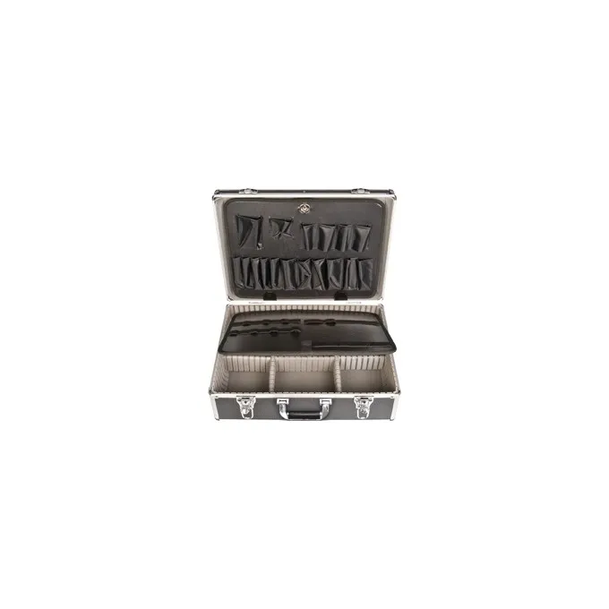 Possui divisória interna e placa porta-ferramentas.