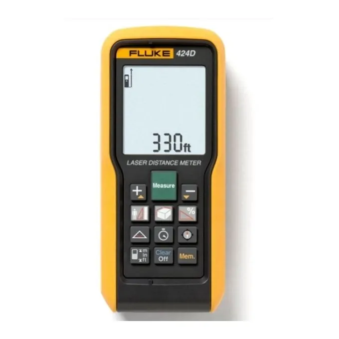 Os medidores de distância 424D repletos de recursos adaptam-se a qualquer situação. - Medição de até 100 m (330 pés) - Maior precisão: aproximadamente 1 mm (0,04 in) - A visualização de quatro linhas mostra ainda mais dados de uma vez - O sensor de inclinação auxilia no controle da altura, no nivelamento e em medições de distâncias horizontais indiretas quando o campo de visão está bloqueado por um obstáculo. - O recurso de ângulo de canto permite determinar o ângulo de um canto - A bússola fornece uma ?orientação? para medições de distância - Armazena 20 visualizações completas para rápida recuperação - Luz de fundo - O modo tripé permite a montagem do medidor em tripé em medições de longas distâncias - Função de Pitágoras completa para medições de altura - Retorno do teclado audível - O recurso Stake Out ajuda a delimitar extensões definidas, como durante a construção de quadros de madeira - Correção automatizada de extremidades para medição a partir de uma borda ou de um canto, --um sensor integrado detecta a posição desse suporte e altera automaticamente o ponto de referência. - Função Mínimo/Máximo Proteção ambiental aprimorada: classificação IP54 de resistência a borrifamento de água e poeira - Maior vida útil da bateria de até 5.000 medições com recurso de desligamento automático - Como todos os novos medidores de distância a laser da Fluke, o 424D oferece medição instantânea da distância entre dois objetos com o uso de apenas um botão, além de: - Mira fácil com laser de luz intensa - Cálculos rápidos de área (metragem quadrada) e volume - Função de adição e subtração de fácil utilização Todos os medidores oferecem: - Redução de erros de estimativa, o que economiza tempo e dinheiro - A mais avançada tecnologia de laser para a medição de distância - Medição instantânea com o uso de apenas um botão - Função fácil de adição e subtração - Cálculo rápido de área (metragem quadrada) e volume - Facilidade de adicionar e subtrair medições - Função Mínimo/Máximo - Maior duração da bateria devido ao recurso de desligamento automático - Cálculo de Pitágoras para determinar indiretamente a distância a partir de outras duas - medições - Bolsa com o logotipo da Fluke - Garantia de 3 anos Os modelos 424D e 419D também oferecem: - Maior visibilidade com tela com iluminação de fundo - Capacidade de medir até 80 m (260 pés); para 419D, 100 m (330 pés) para 424D - O modo tripé permite a montagem em tripé para a medição de longas distâncias - Função stake out - Cálculo de Pitágoras aprimorado para determinar indiretamente a distância a partir de outras três medições - Retorno do teclado audível - Armazenamento das últimas vinte medições para rápida recuperação de distância - Forte proteção ambiental com vedação IP54 (à prova de poeira e borrifamento de água) O modelo 424D também oferece: - Sensor de inclinação para medições em áreas de difícil acesso - A bússola fornece uma ?orientação? para a medição da distância - Correção automatizada de extremidades: ao fazer a medição de uma borda ou de um canto, um sensor integrado detecta a posição desse suporte e altera automaticamente o ponto de referência .