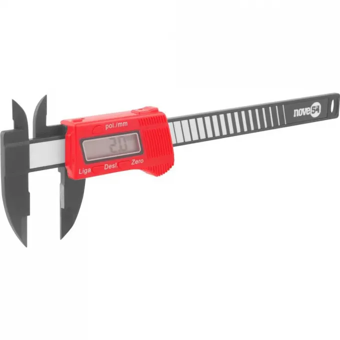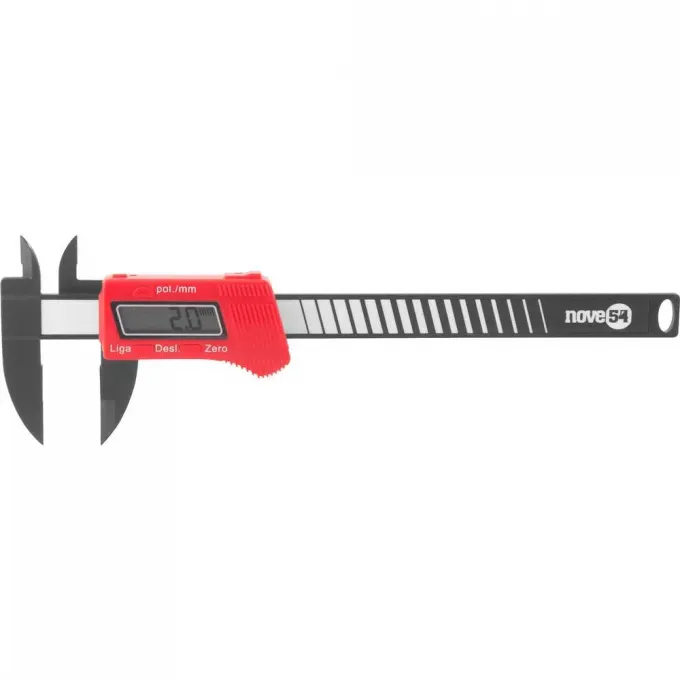 O Paquímetro digital é indicado para medições em geral, possui o corpo em plástico e as faces de medição em fibra de carbono.