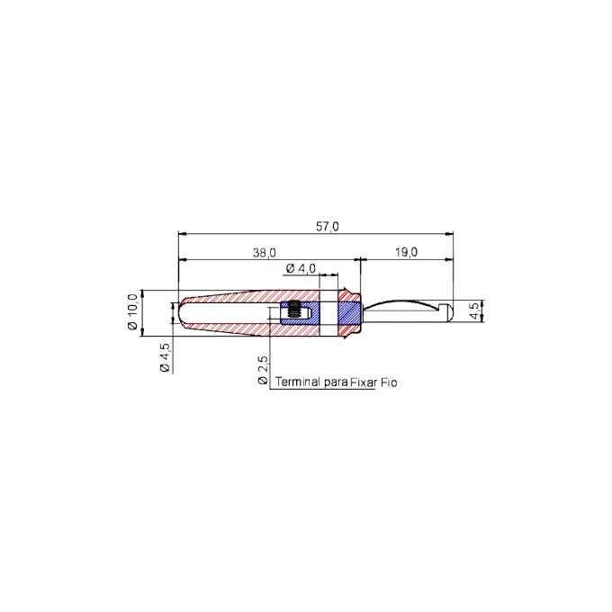 Corpo: PVC - Pino: Latão Niquelado - Mola: Bronze Fosforozo