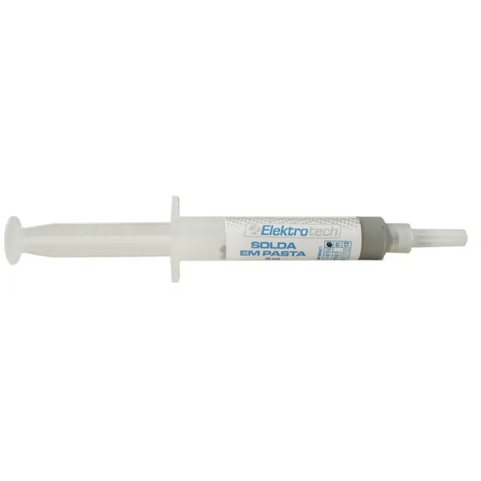 Mistura homogênea e cineticamente estável de diminutas partículas esféricas de estanho, fluxo, solvente e um agente em suspensão.